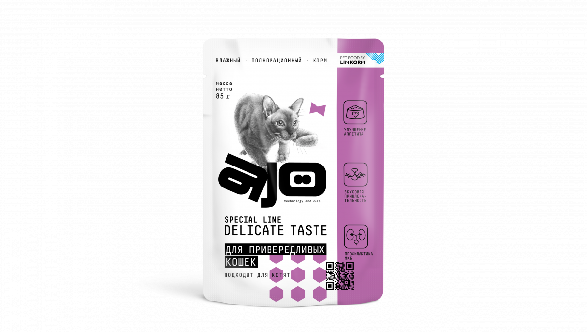 AJO (Айо) Cat Delicate Taste Влажный корм, кусочки в соусе для привередливых кошек и котят.