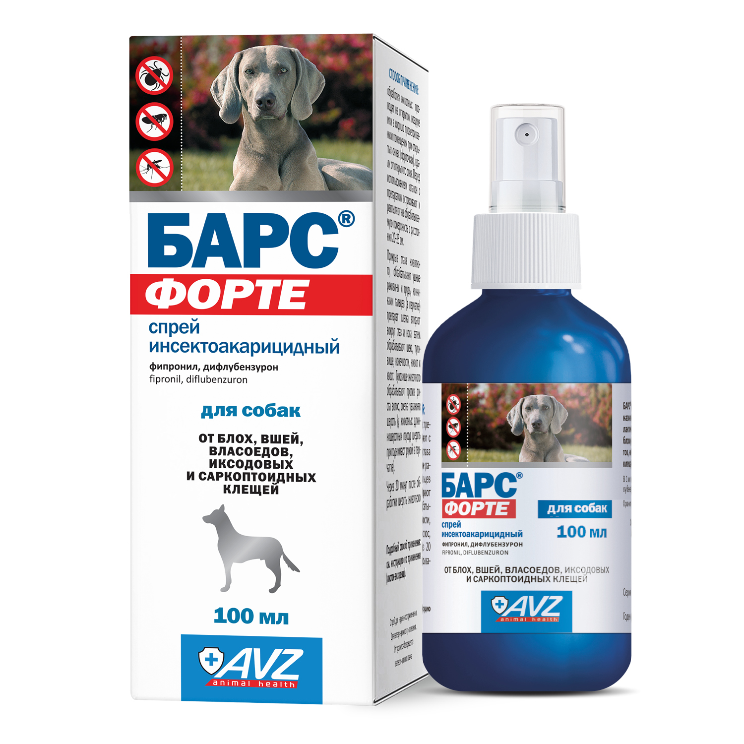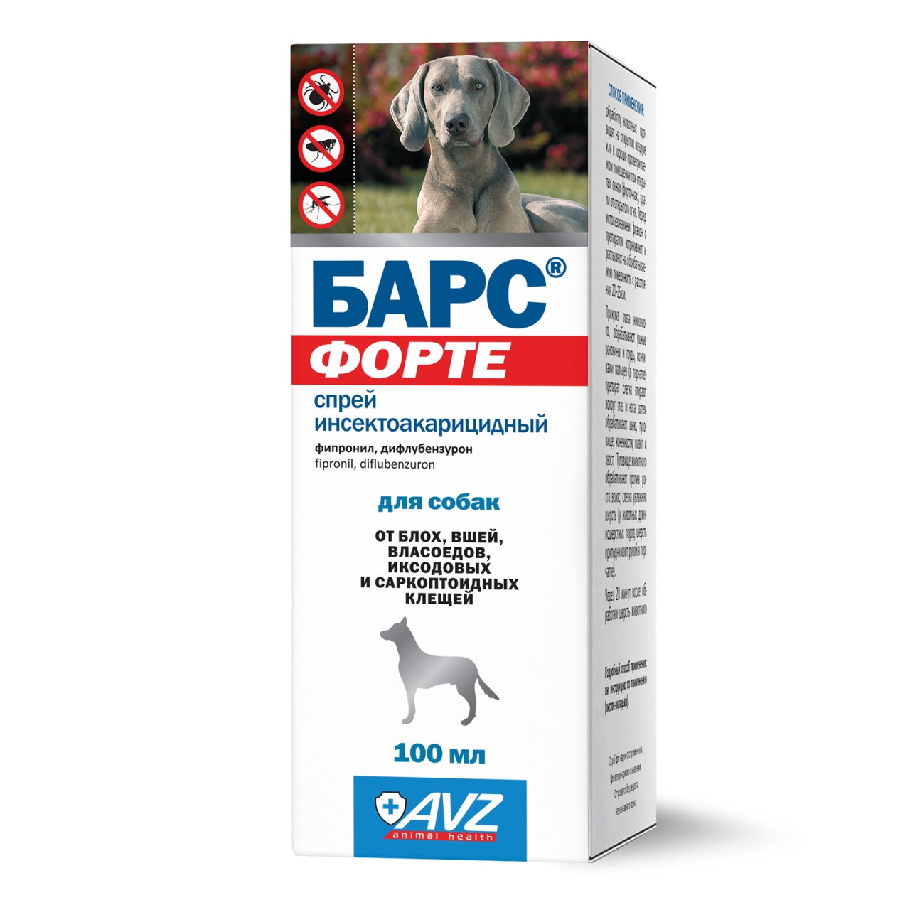 БАРС® форте спрей инсектоакарицидный применяют собакам и кошкам с лечебной и профилактической целью при энтомозах (вши, блохи, власоеды), саркоптоидозах (саркоптоз, нотоэдроз) и поражении иксодовыми клещами.