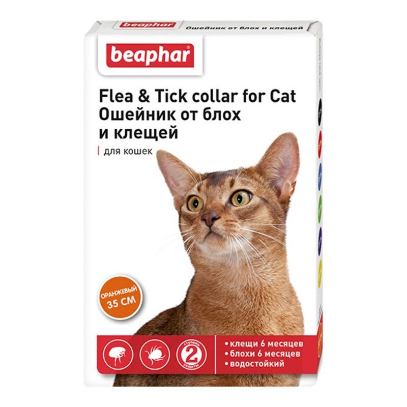 BEAPHAR Ошейник от блох и клещей для кошек, 35 см, оранжевый
