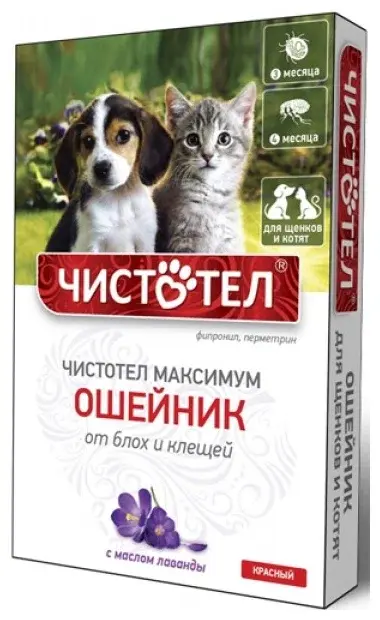 Чистотел Максимум ошейник применяют для уничтожения блох, вшей, власоедов и иксодовых клещей, паразитирующих на щенках и котятах старше 4-месячного возраста, а также для защиты животных от их нападения, особенно в теплое время года (в период повышенной активности паразитов).