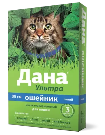 ДАНА УЛЬТРА Ошейник от блох и клещей для кошек, 35 см, синий