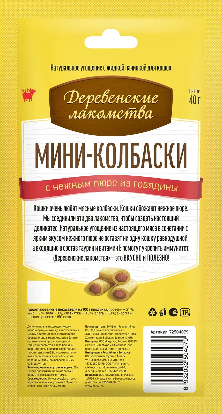 Кошки очень любят мясные колбаски. Кошки обожают нежное пюре. Мы соединили эти два лакомства, чтобы создать настоящий деликатес. Натуральное угощение из настоящего мяса в сочетании с ярким вкусом нежного пюре из говядины не оставят ни одну кошку равнодушной, а входящие в состав таурин и витамин Е помогут укрепить иммунитет.