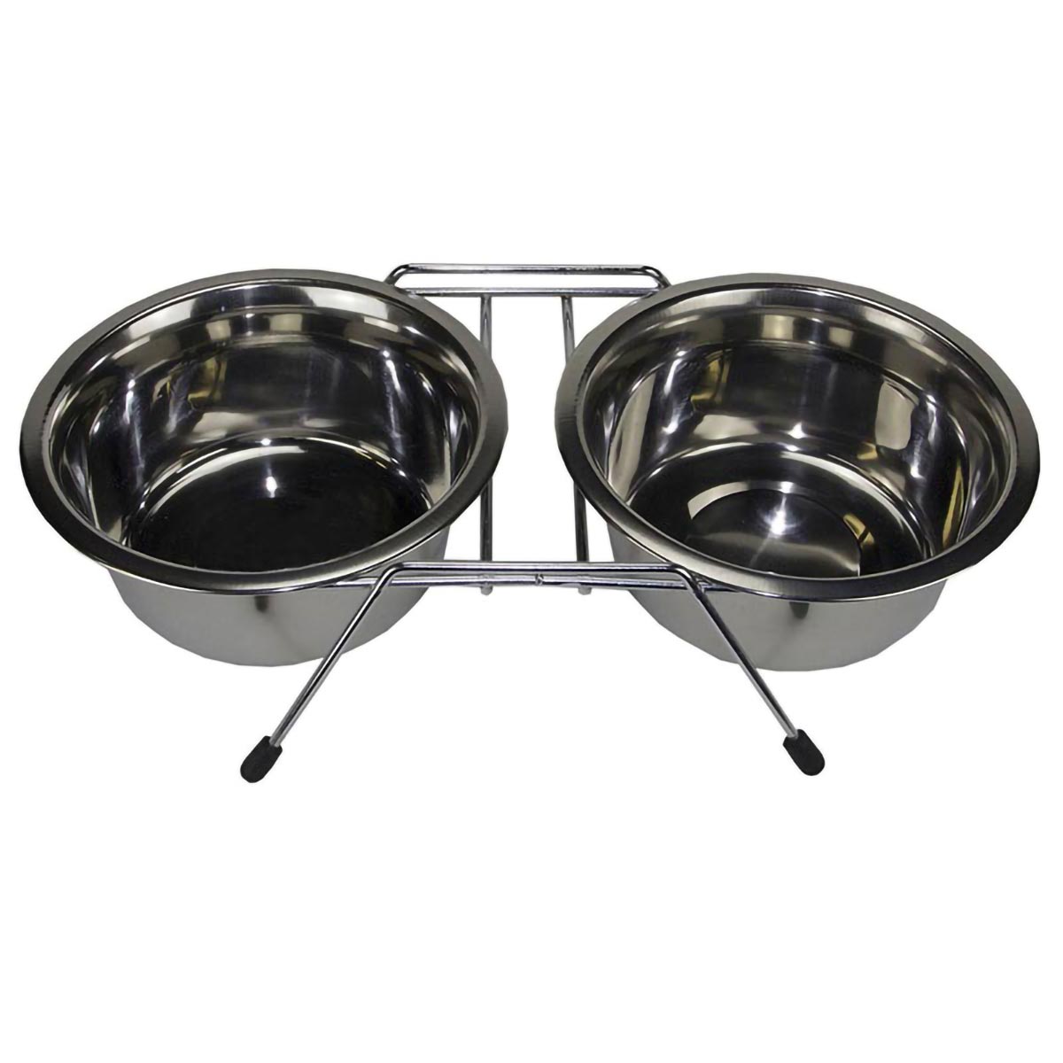 Конструкция подставки с мисками не дает корму высыпаться на пол. Ножки подставки снабжены резиновыми наконечниками, которые препятствуют скольжению. Посуда из нержавеющей стали абсолютно безопасна для здоровья.