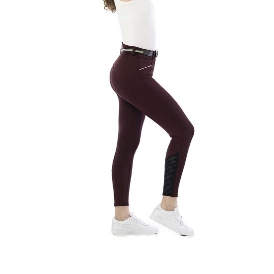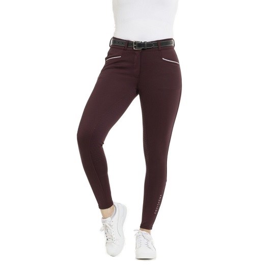 EQUITHEME Бриджи для верховой езды женские CLAUDINE, полная силиконовая лея, высокий пояс, бордо, размер 40