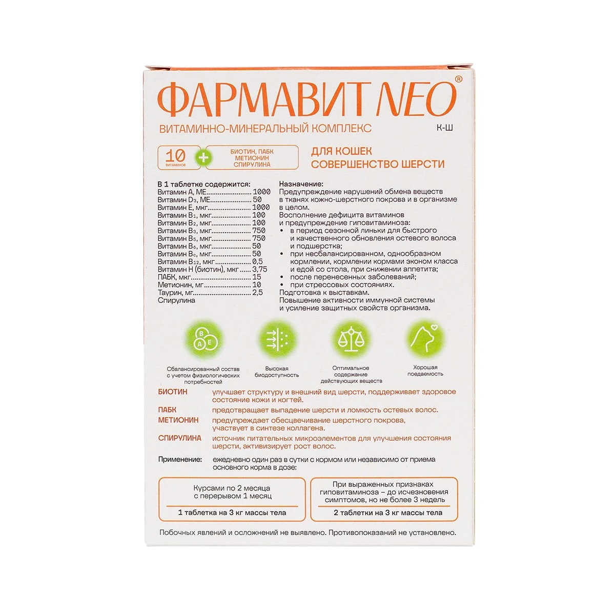 Фармавит Neo – комплекс витаминов, минералов и аминокислот, подобранных с учетом физиологических особенностей кошек.