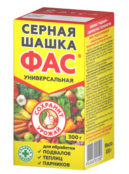 Современное средство серная шашка ФАС для фумигационной обработки пустых погребов и подвалов, парников, теплиц и оранжерей, которая уничтожает: