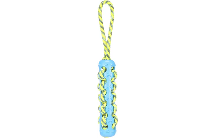 Эта сине-жёлтая буксировочная верёвка Tofla идеально подходит для игр с собакой в воде! Она изготовлена из нейлона и термопластичной резины, плавает и имеет ручку для дополнительного удовольствия во время игры.