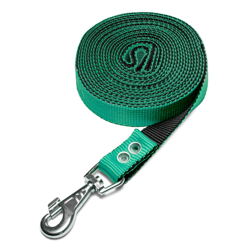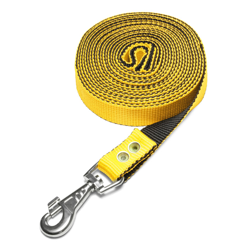 Прочный, долговечный и надежный капроновый поводок длиной 3 метра при ширине 25 мм. Поводок применяется для прогулок и дрессировки собаки. Изделие снабжено надежным карабином из высококачественной стали, а специальный переходник позволяет карабину крутиться вокруг своей оси, предотвращая запутывание. На поводке имеется петля, которая одевается на руку для более удобного использования.