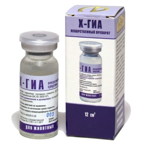 Х-ГИА вводят животным внутримышечно в следующих дозах: животным весом до 5 кг — 0,5 мл на одно животное, весом 5 – 25 кг — 1 мл на одно животное, весом свыше 25 кг — 2 мл на одно животное. Курс лечения — 7 – 10 инъекций с интервалом 48 часов. Лекарственное средство не требует разведения новокаином. Инъекцию необходимо делать в мягкие ткани в область пораженного сустава. С целью коррекции возрастных изменений суставов и болезней, связанных с периодом интенсивного роста и формирования скелета у молодняка животных (в возрасте от 4,5 до 8 месяцев, когда интенсивность нарастания мышечной массы опережает формирование суставов и появляется хромота перемежающего типа) Х-ГИА вводят в пораженную конечность в вышеуказанных дозах с применением циркулярной новокаиновой блокады. Максимальный курс лечения — 10 инъекций. Х-ГИА совместим с другими лекарственными средствами и кормовыми добавками.