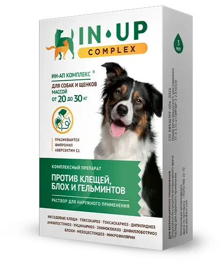 Для комплексного уничтожения блох, иксодовых клещей, вшей власоедов, круглых (в т.ч. микрофилярий) и ленточных гельминтов обработку животных массой 20-30 кг проводят однократно, используя дозу 3,0 мл.