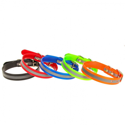 Ошейник из биотана со светоотражающей полосой шир. 15 мм, обх. шеи. 21-30см. Ошейники из биотана (высокотехнологичного материала, изготовленного из нейлона и термопластичного полиуретана). На ошейнике нанесена светоотражающая полоса которая обеспечивают дополнительную безопасность для животного, особенно в вечернее время.