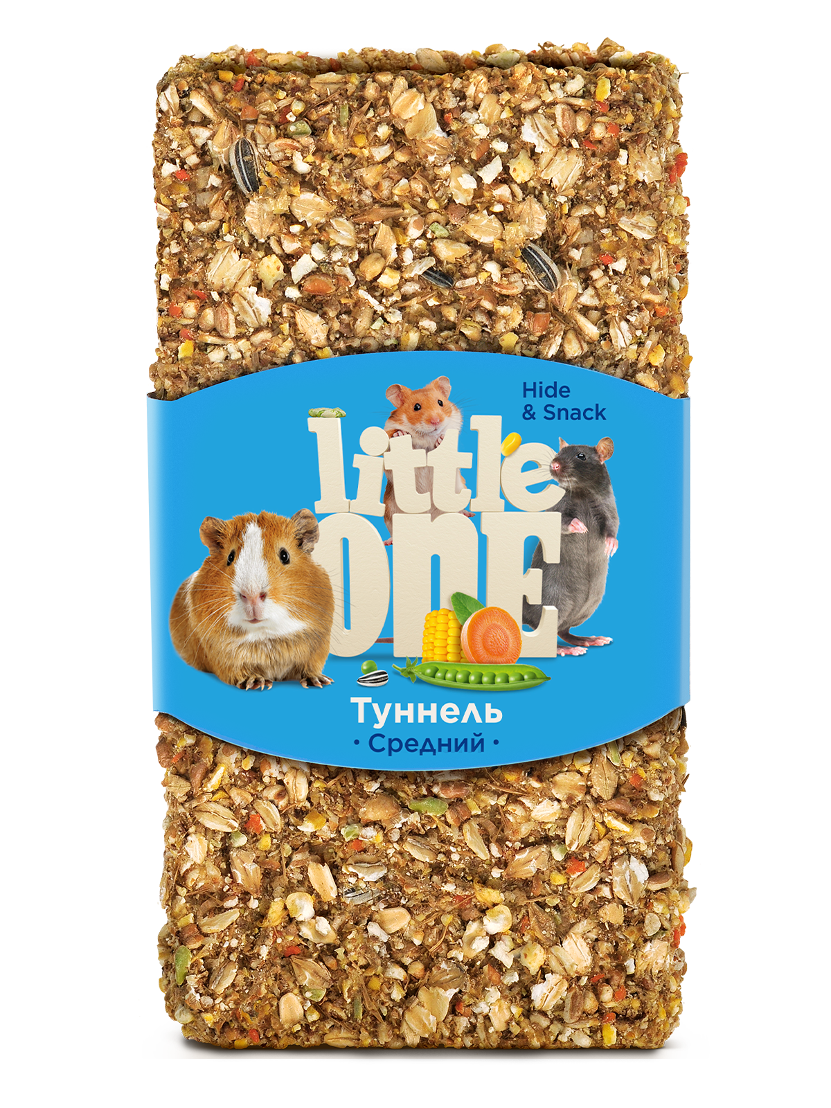 Little One Туннель средний «Вкусная лазейка» — аппетитное, полностью съедобное лакомство-игрушка, созданное из разных видов воздушных зерен, плющеных ингредиентов и множества других разнообразных компонентов. Туннель идеально подойдет для морских свинок и крыс, а также придется по вкусу другим видам всеядных декоративных животных.