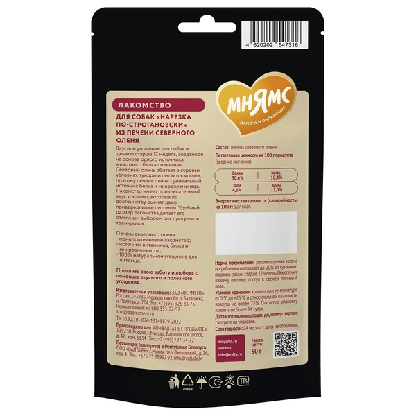 Вкусное угощение для собак и щенков старше 12 недель, созданное на основе одного источника животного белка - оленины.