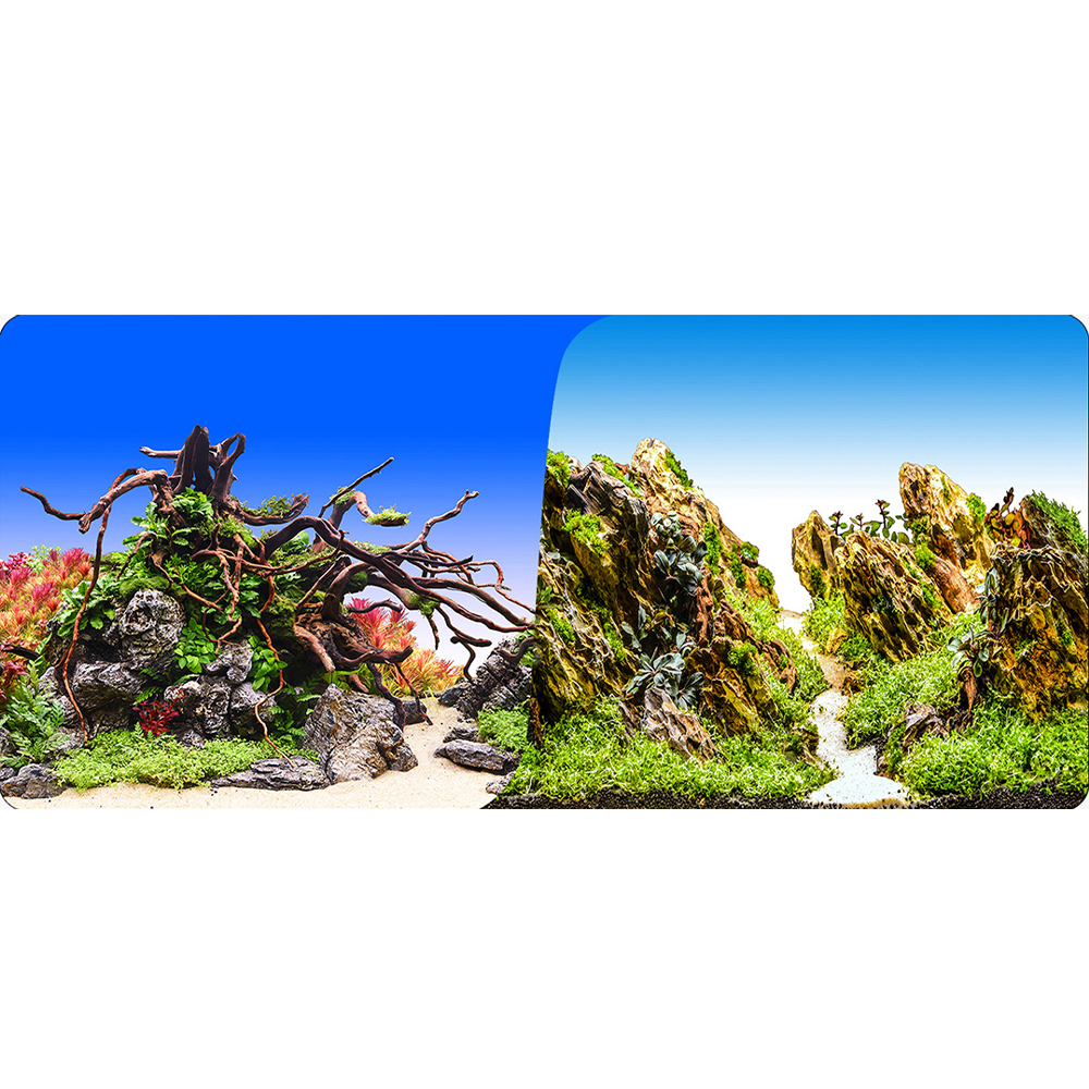 PRIME Фон для аквариума двухсторонний Коряги с растениями/Камни с растениями