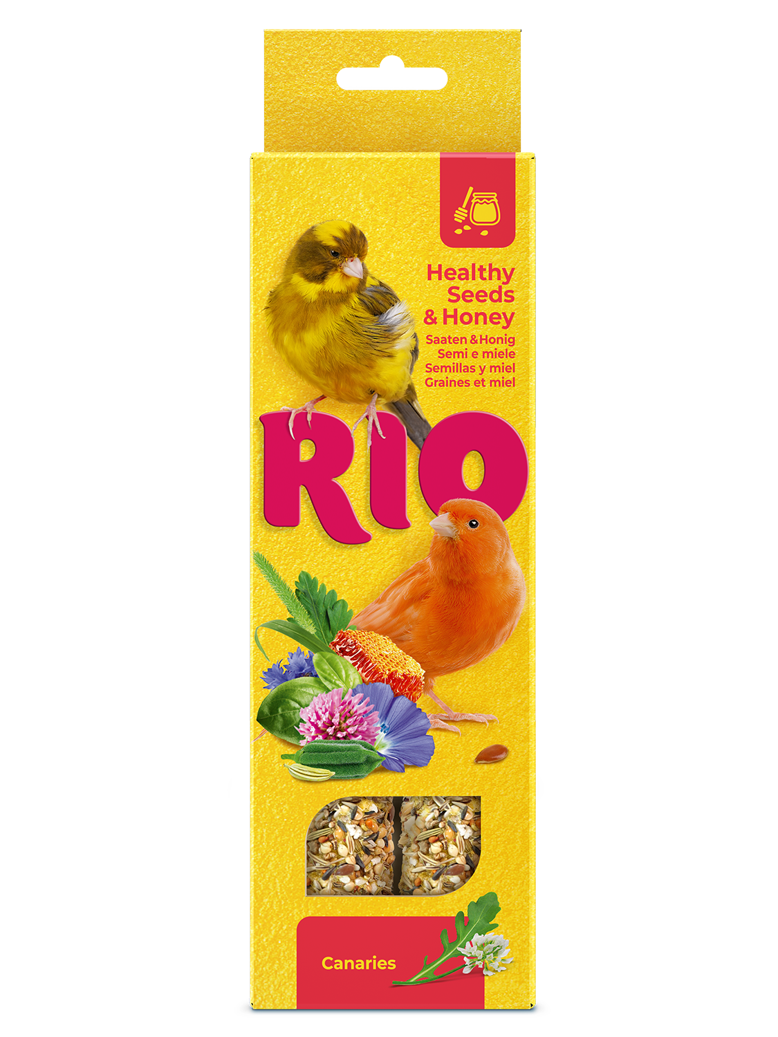 Палочки с полезными семенами и мёдом — это вкусное и питательное лакомство для канареек. Богатый состав содержит тщательно отобранные ингредиенты: канареечное семя, очищенный овёс, абиссинский нуг, семена клевера, льна, периллы и кунжута.