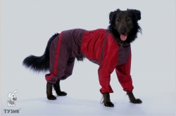 Комбинезон из плащево-курточной водо- и ветроотталкивающей ткани, утепленный подкладкой из флиса/ полартека. Предназначен для выгула собак в холодную/морозную погоду.