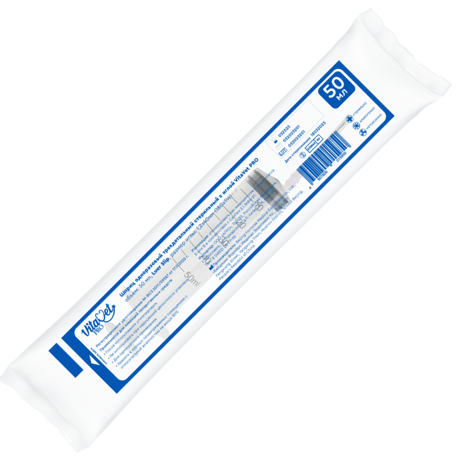 Шприц инъекционный трехкомпонентный VitaVet Pro (ВитаВет), одноразовый.