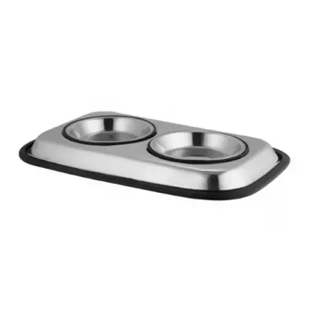 ZOONIK Кормушка металлическая для кошек с двумя мисками 13 см